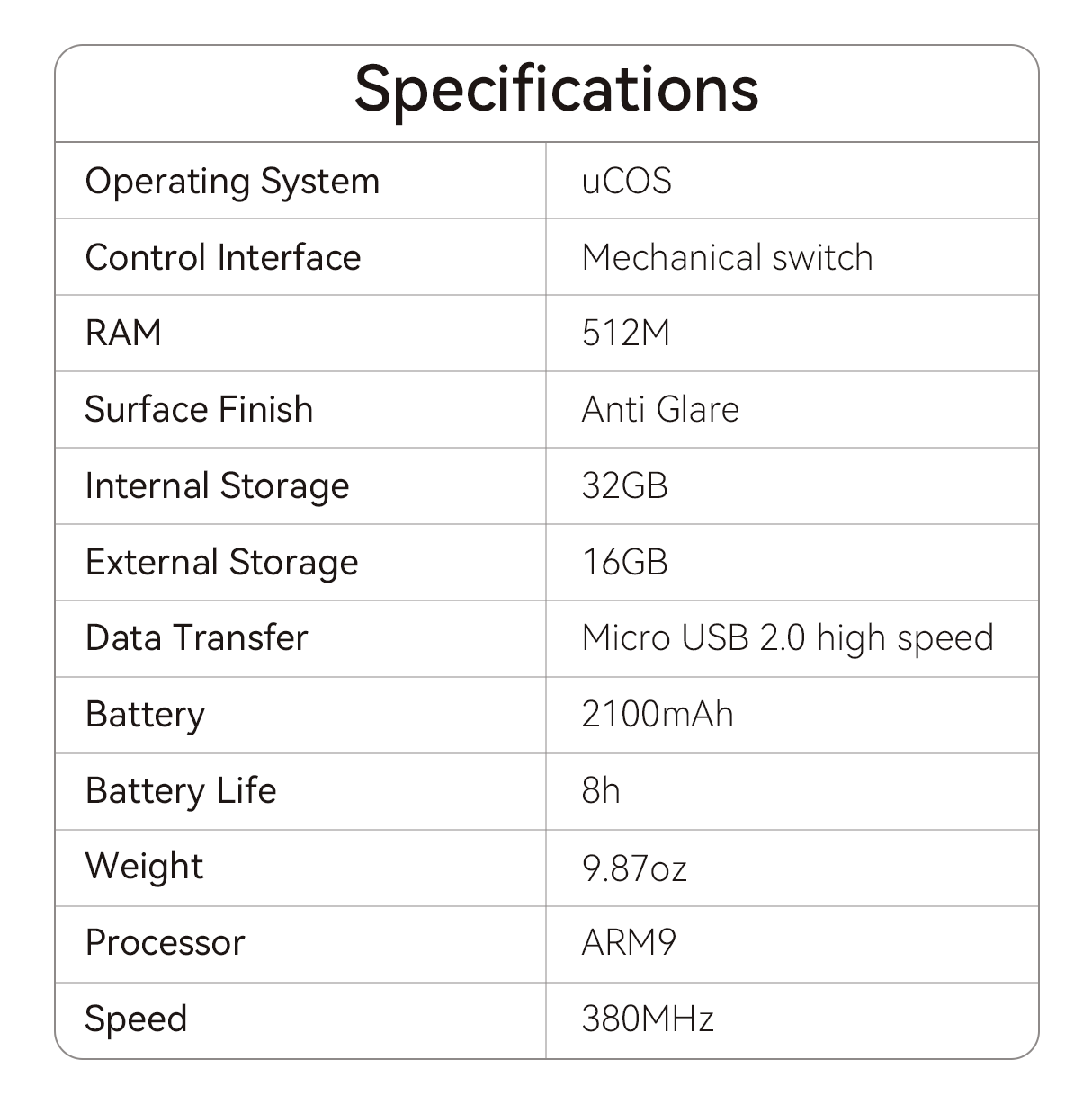 • 7-inch Eink Screen (800*480 resolution): Clear, glare-free display to reduce eye strain.
