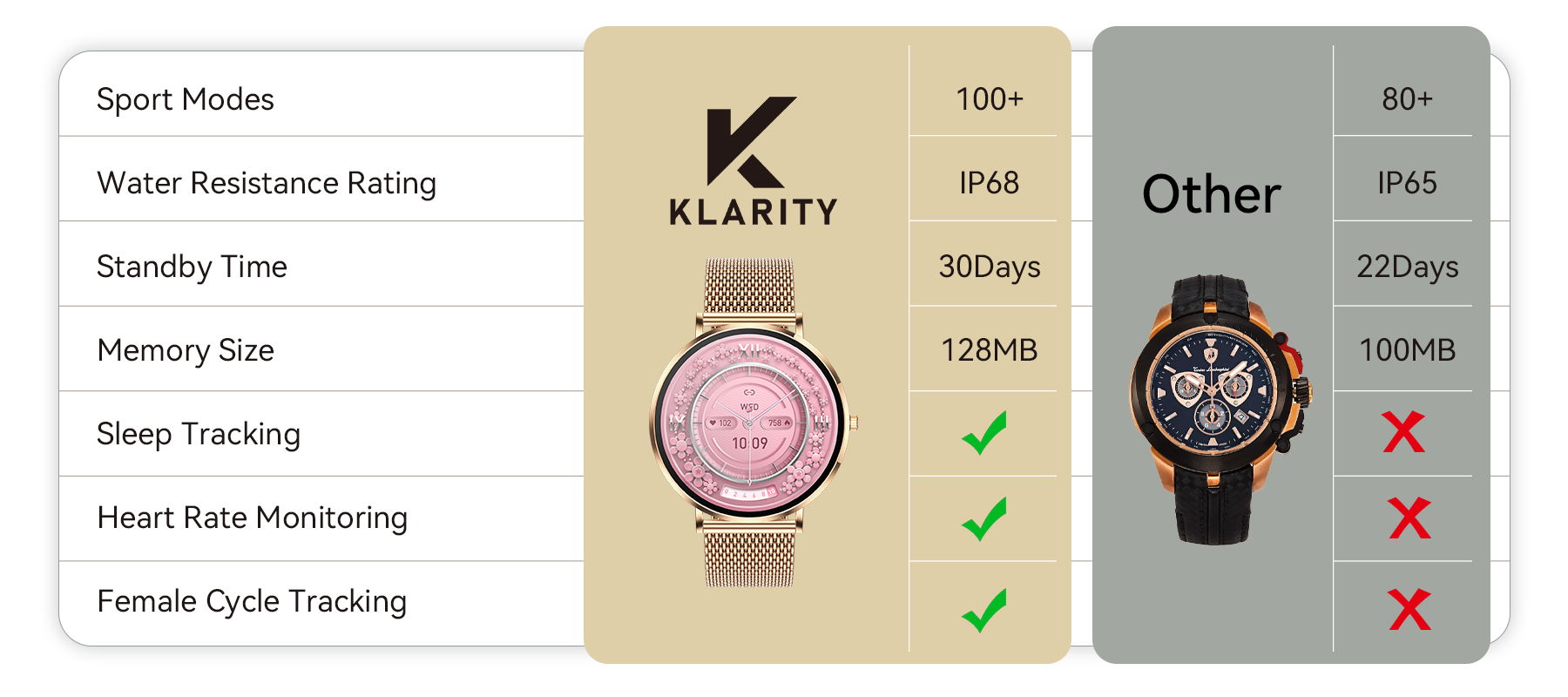 The Klarity Smart Watch was her answer. It is an elegant companion with an ultra-slim design and comprehensive health monitoring. The product was built so she would never have to compromise again.